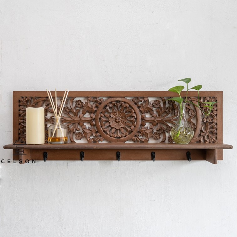 - This gorgeous wall shelve comes with multiple hooks & are the boost your wall needs!